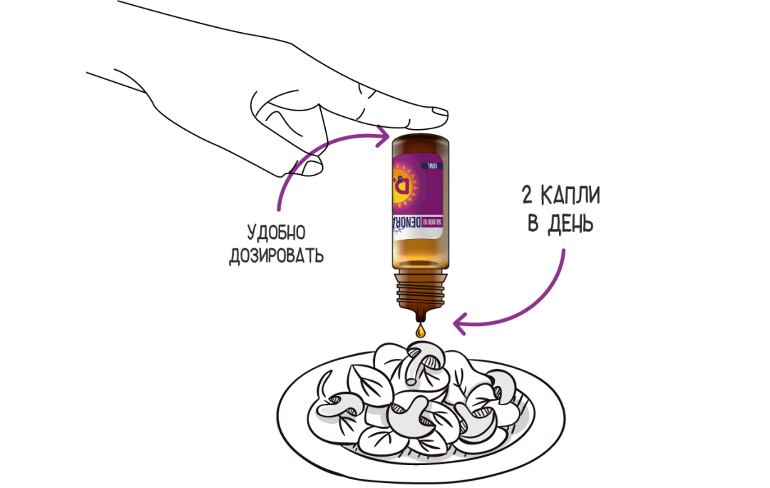 Denora-3 капли c витамином D3 и экстрактом шиповника обеспечивают нормальное развитие и защиту костей, зубов, мышц.