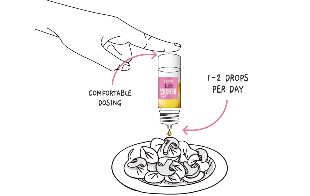 Denora Forte is a vitamin D3 and spinach oil complex, that helps to maintain normal growth and development of bones, contributes to the normal health of teeth and muscles, promotes normal absorption of calcium and phosphorus, helps to maintain normal blood calcium levels and contributes to the normal functioning of the immune system.
